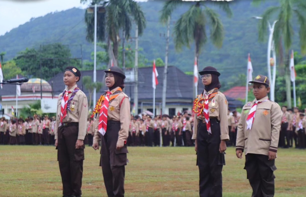Sungailiat - Upacara dalam rangka memperingati Hari Ulang Tahun (HUT) Pramuka ke-64 Tahun 2025 di Kabupaten Bangka berlangsung sederhana dan meriah.